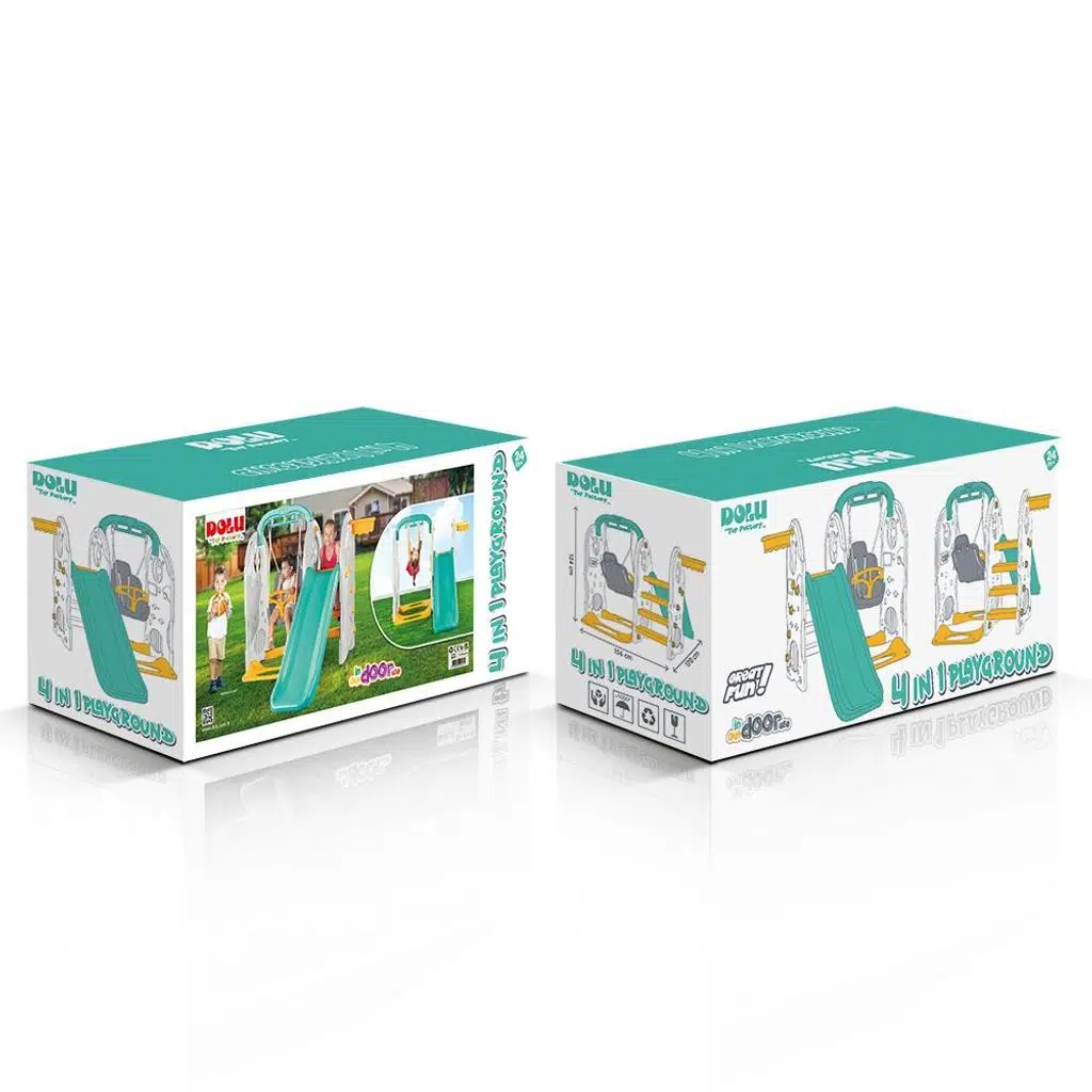 24 ay ve üzeri çocuklar için uygundur. 123x156x170 cm ölçülerindedir.İçerisinde barfiks, salıncak, kaydırak ve basket potası yer almaktadır. Kaydırak yeri 126 cm'dir.Kolay kurulumu olan kaydırağın çocukların beden gelişimlerine yararı vardır.