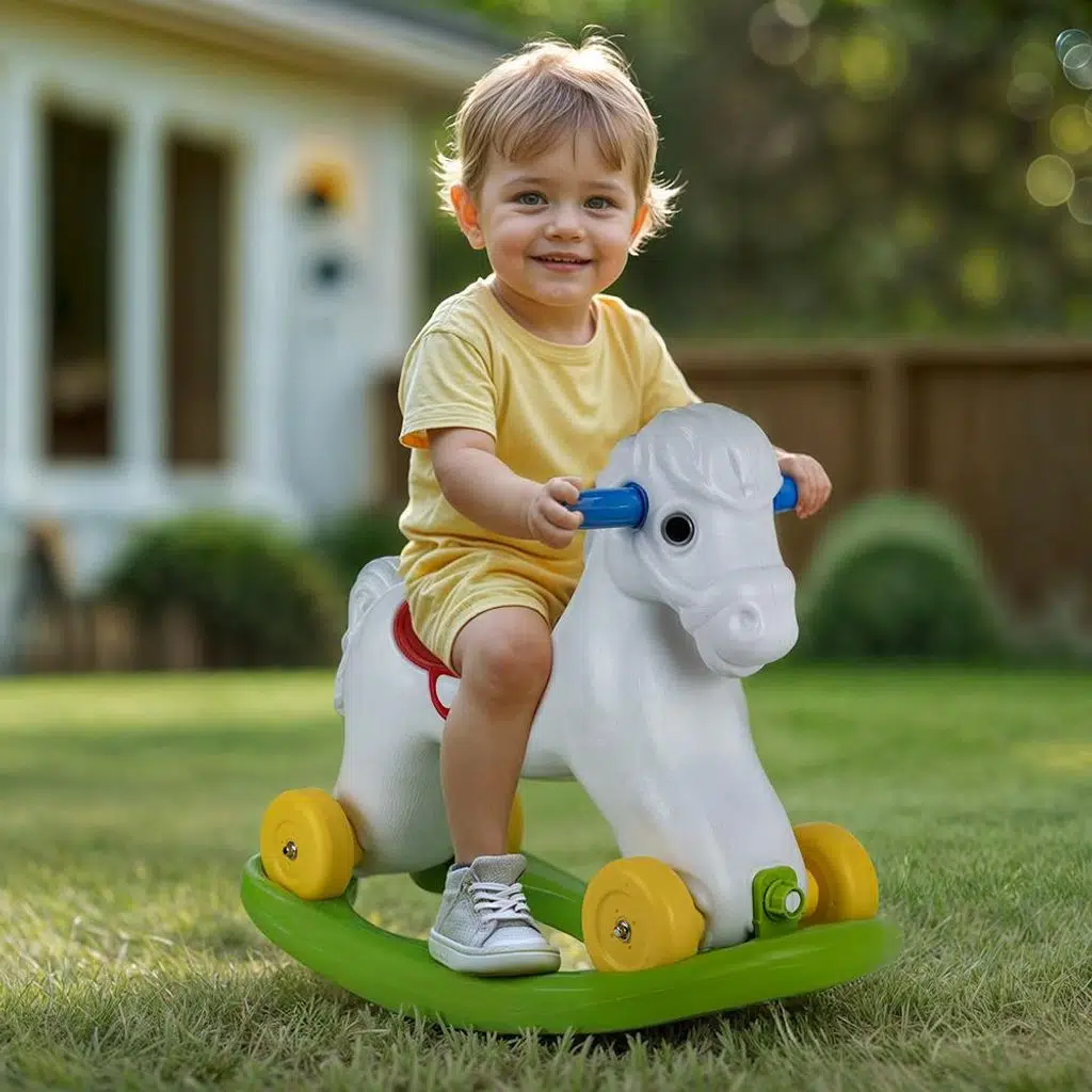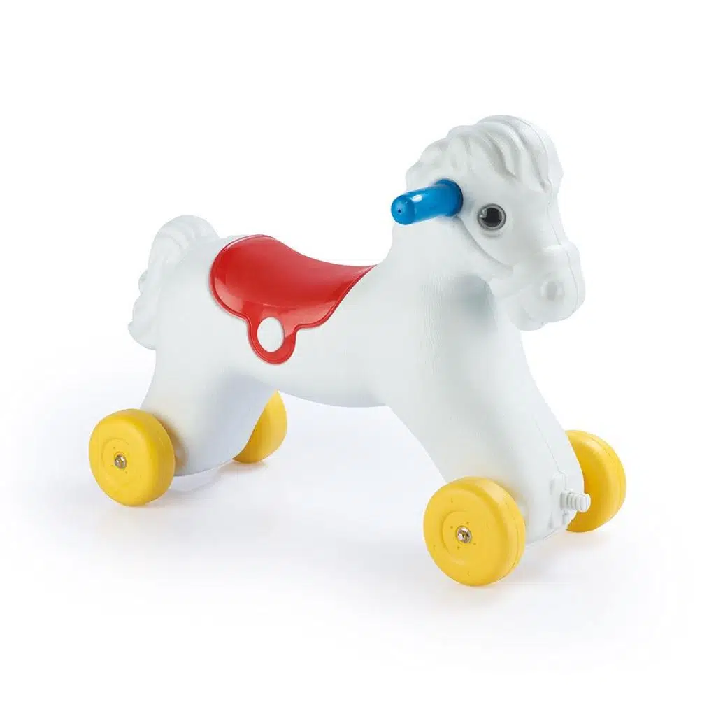 24 ay ve üzeri çocuklar için uygundur. 50x34x70 cm ölçülerindedir. 2 farklı şekilde kullanılabilir.Sallanan atın altındaki aparat çıkartıldığında, tekerlekleri ile sürülebilir. Kolay kurulabilir ve kutu içerisindedir