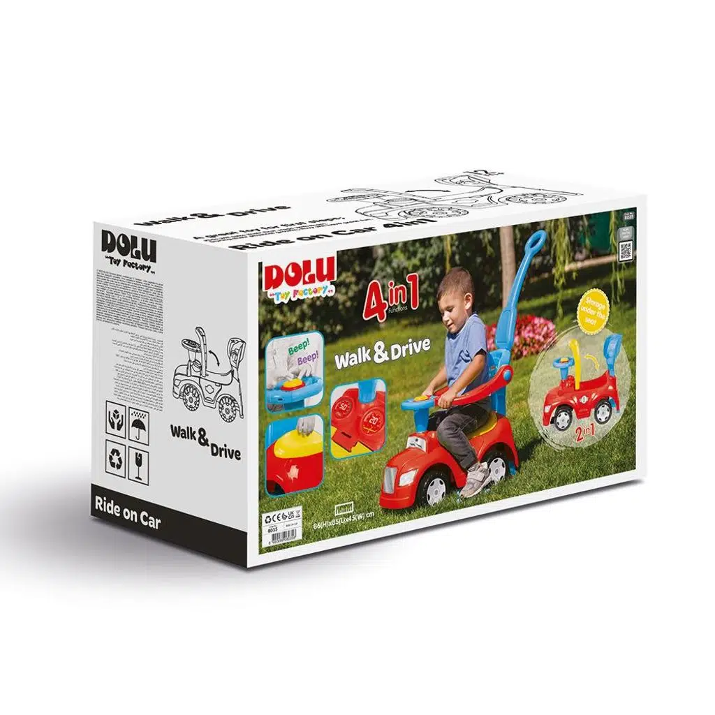 12 ay ve üzeri çocuklar için uygundur. 86x85x45 cm ölçülerindedir. 4 farklı özelliği vardır. Sallanabilir, aparatı çıkartıldığında sürülebilir, korumalı ve ebeveyn kontrollüdür.Koltuk altında bagaj yeri vardır. Kornalıdır, kutu içindedir ve kolay kurulumludur. Çocukların beden gelişimine yararı olmaktadır.