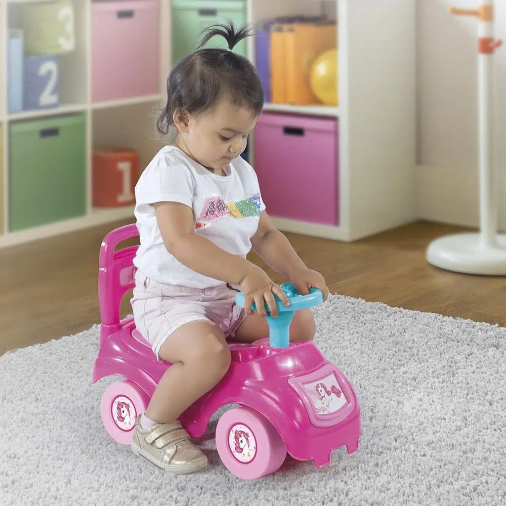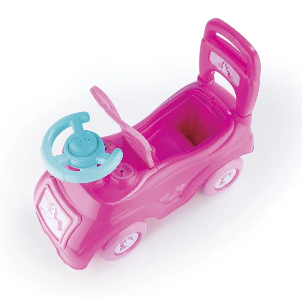 12 ay ve üzeri çocuklar için uygundur. 37x21x47 cm ölçülerindedir. Kornalı ve bagajlıdır. Pembe renktedir. Kutu içerisindedir ve çocukların beden gelişimine yararı vardır.